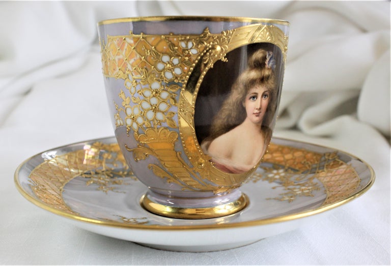 Antique Royal Kpm Hand Painted Portrait Tea Cup And Saucer With Heavy Gilt Accents At 1stdibs