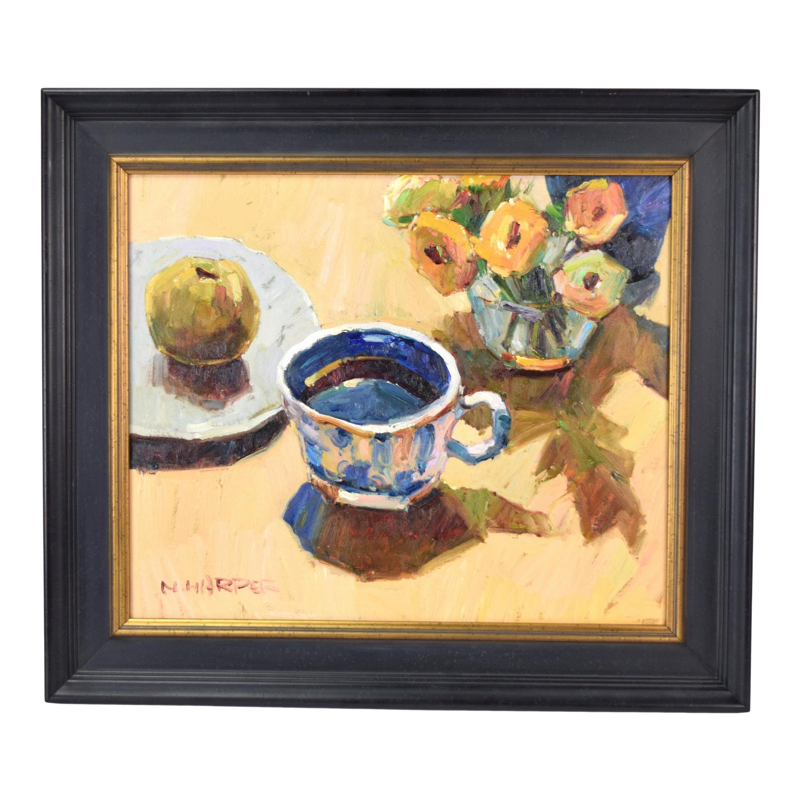 Vintage Impressionist Oil Painting Still Life W Vintage Teacup Fruit Flowers Sgd N Harper Chairish